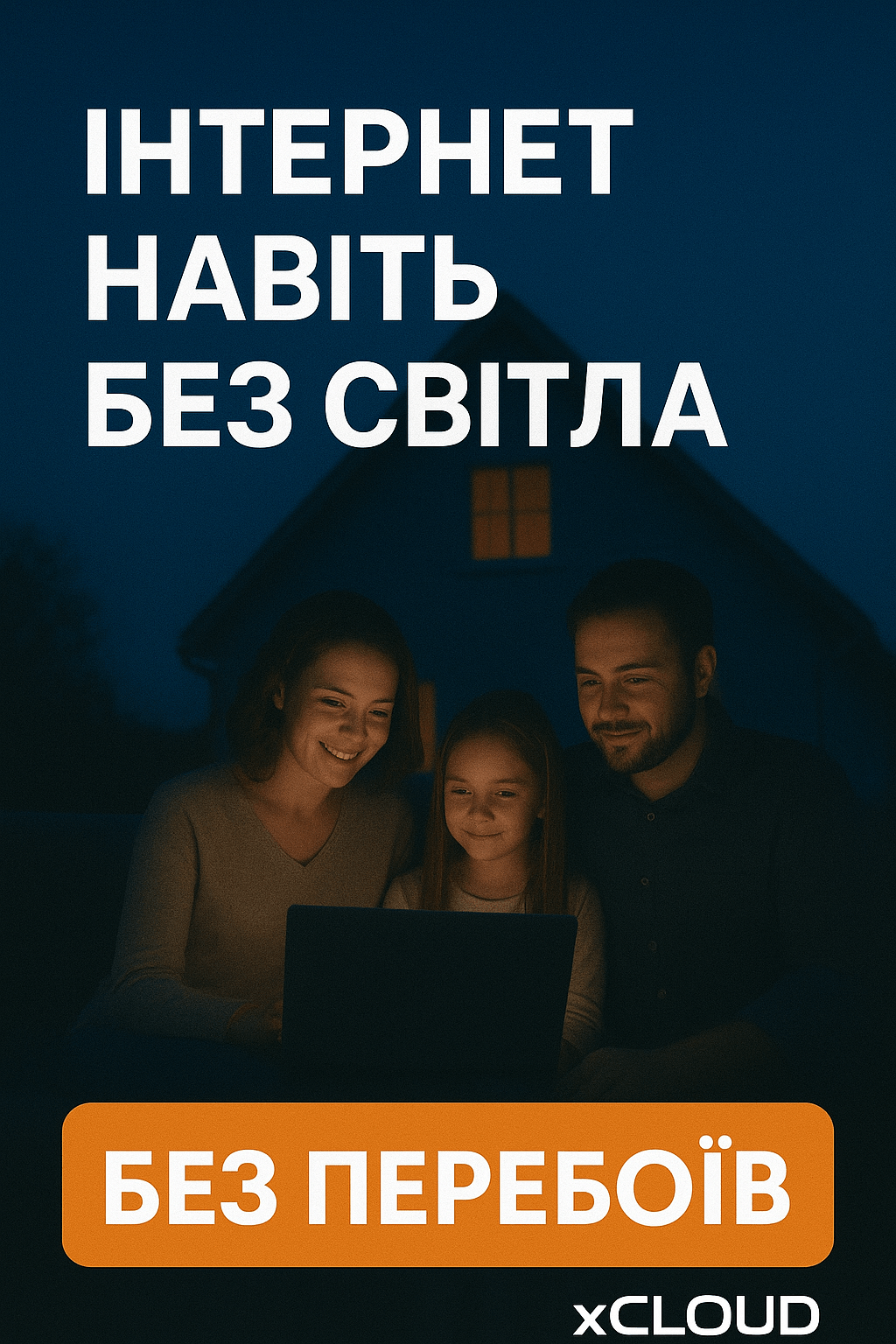 В умовах нестабільного електропостачання важливо, щоб домашній інтернет не підводив. У лінійці тарифів xCLOUD ви можете обрати швидкість до 300 Мбіт/с або до 1000 Мбіт/с і бути впевненими: ваше підключення залишиться активним навіть без світла.*